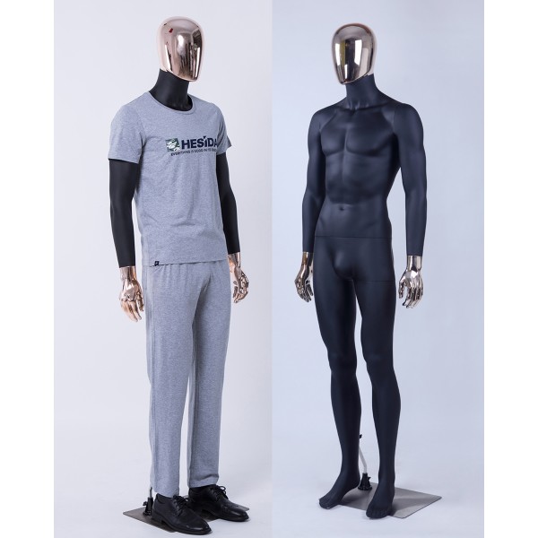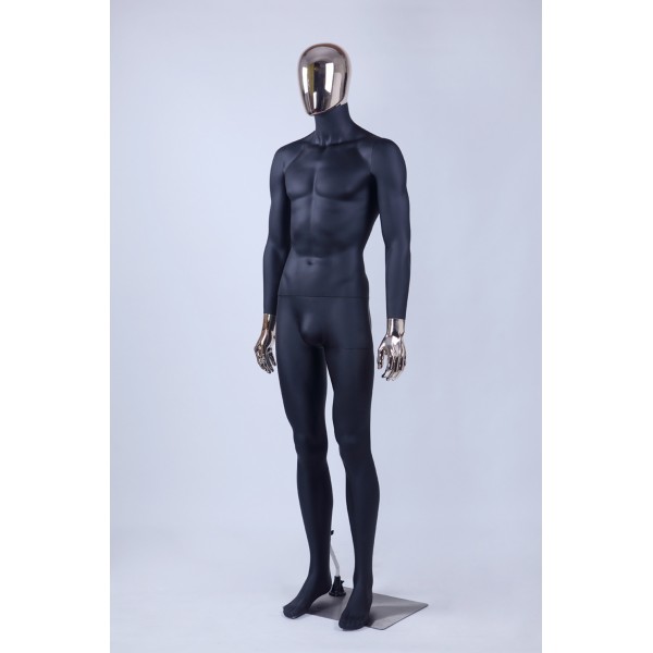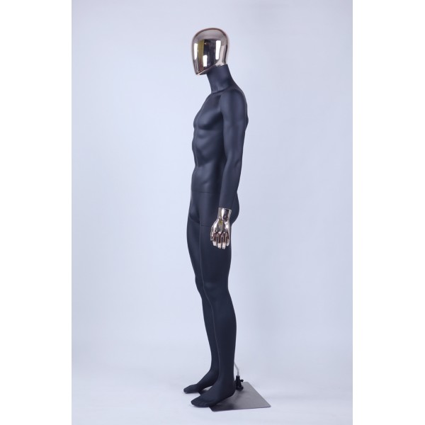 B Ware 134 DM1-8D Männlich Abstrakte Schaufensterpuppe Galvanik Kopf Hände Neu Schwarz Matt