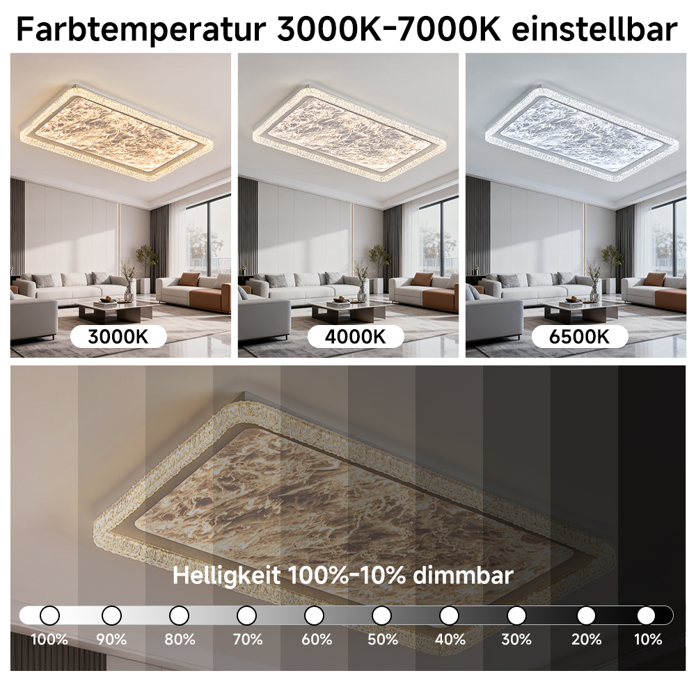 - Helligkeit einstellbar mit der Fernbedienung, 10 % - 100 % dimmbar.