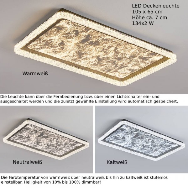 - Lichtfarbe einstellbar mit der Fernbedienung kalt - warm, 7000 k - 3000 k stufenlos möglich.