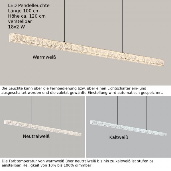 LED Pendelleuchte mit der Fernbedienung Lichtfarbe und Helligkeit stufenlos steuerbar