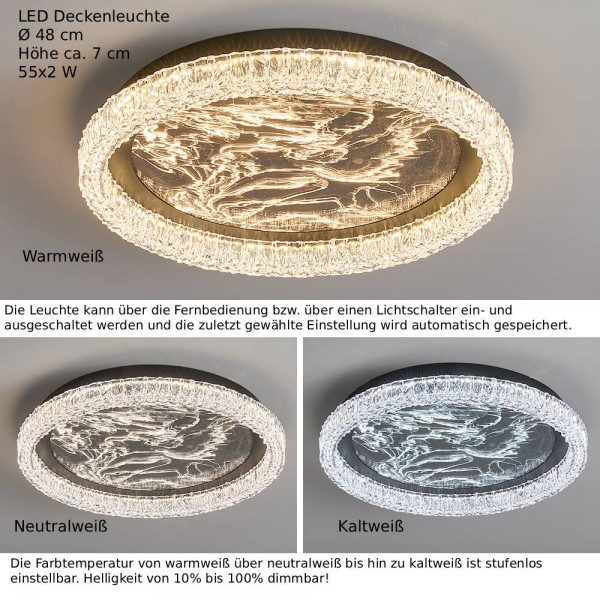 LED Ceiling Light with remote control, continuously adjustable light color and brightness