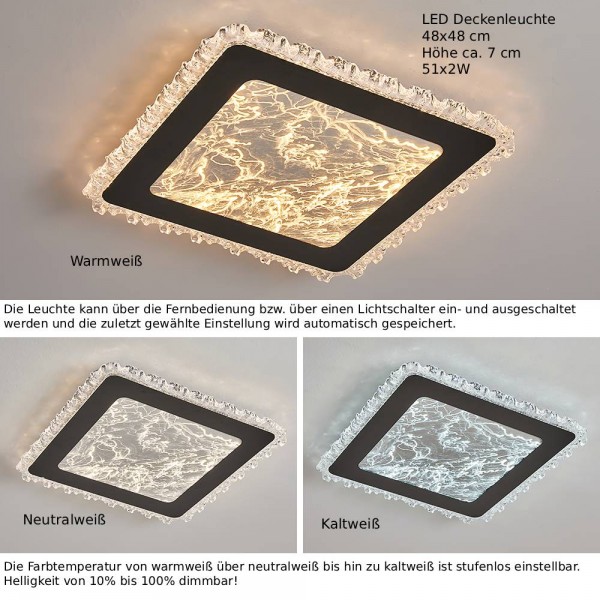 LED Ceiling Light with remote control, continuously adjustable light color and brightness