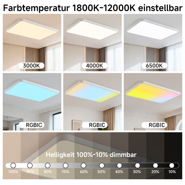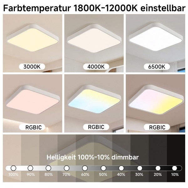Smart RGBIC LED Ceiling Light – Dynamic Natural Light Simulation