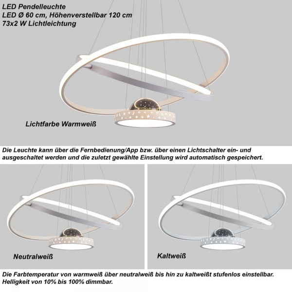 TY9644-CD, Ø 60 cm, height adjustable up to 120 cm, LED power 73x2 W